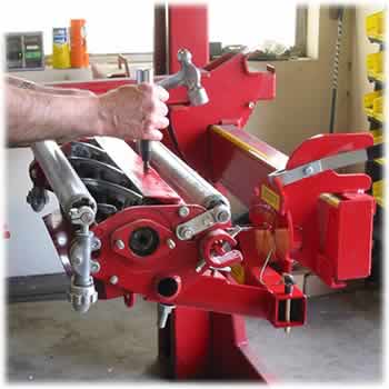 There's nothing else on the market quite like this unique lifting adapter, available exclusively for use with the Trion workstation. When used with selected attachments, walk mower and gang reel service become virtually effortless. You can raise equipment to a comfortable working height and safely rotate it a full 360 degrees. The counter-balanced design and simple loading process make it an incredibly convenient tool for secure access to gear boxes, bedknives, etc. No more lifting, and no benches, platforms or other obstructions to get in the way of your work! |